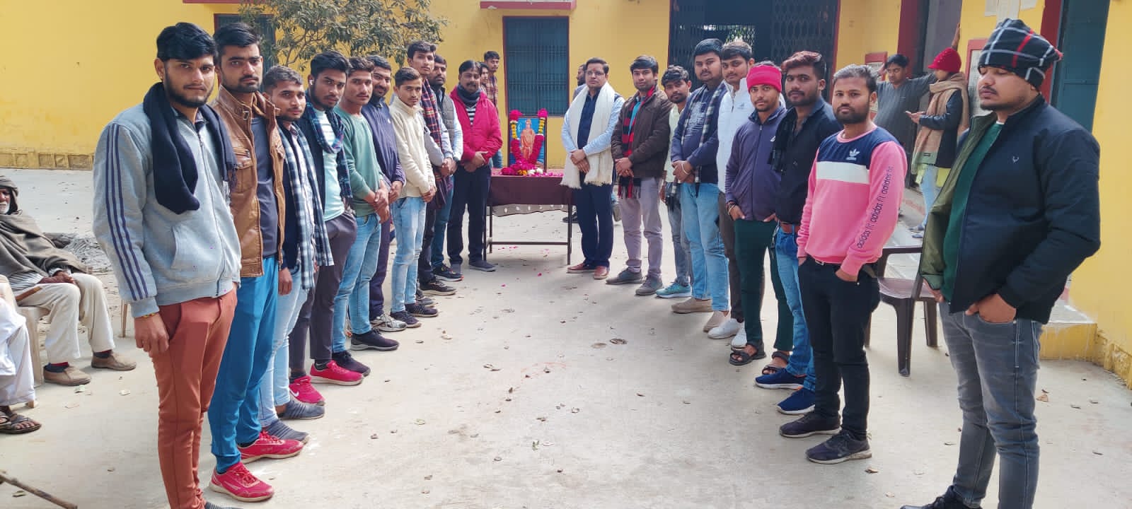 जिसमें मुख्य रुप से भारतीय जनता युवा मोर्चा के प्रदेश कार्यसमिति सदस्य अतुल रमेश पाठक एवं भाजपा अल्पसंख्यक मोर्चा के जिलाध्यक्ष अशफाक खान मौजूद रहे। कार्यक्रम में स्वामी विवेकानंद की तस्वीर पर माल्यार्पण कर युवा मंडल के अध्यक्ष पुष्पेंद्र सिंह भारौली समस्त साथियों के द्वारा निराश्रित भवन निवासरत बुजुर्गों को फल वितरित किए गए।