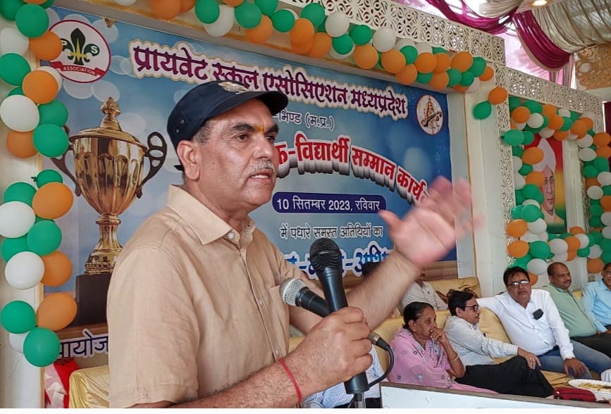 उन्होंने आगे कहा कि घर पर और स्कूल में अध्यापन करने से आपको कभी भी कोई भी परीक्षा कठिन नहीं लगेगी। उन्होंने कोटा का उदाहरण देते हुए कहा कि वहां बच्चों का बचपन जा रहा है जितनी संख्या में बच्चे वहां कोचिंग लेते हैं उसका बहुत छोटा प्रतिशत ही सफल होकर के आता है साथ ही बच्चों में डिप्रेशन की समस्या होने के कारण से बच्चे आत्महत्या के लिए प्रेरित हो रहे हैं कार्यक्रम को संबोधित करते हुए PSA के प्रदेश उपाध्यक्ष अनिल दीक्षित ने कहा कि आज भिंड जिले में जो शिक्षक सम्मान समारोह आयोजित किया गया है वह लगातार द्वितीय वर्ष संपन्न हो रहा है यह एक भविष्य में मील का पत्थर साबित होगा क्योंकि अभी तक हमारा प्राइवेट स्कूलों का शिक्षक अपने आप को उपेक्षित महसूस कर रहा था इसके साथ ही प्राइवेट स्कूल एसोसिएशन के संभागीय अध्यक्ष संतोष उपाध्याय ने अपने उद्बोधन में कहा कि बच्चों के ऊपर भविष्य का बोझ है आज यह प्रतिभाशाली बच्चे भारत का भविष्य है हमें इन्हें बहुत ही सजगता के साथ संवारना और संभालना है। कार्यक्रम की अध्यक्षता करते हुए बीपी त्यागी ने कहा कि संगठन आज की मूलभूत आवश्यकता है यदि हम संगठित होकर के काम नहीं करेंगे तो हमारा अस्तित्व पूरे प्रदेश में कहीं भी नहीं बचेगा प्राइवेट स्कूल एसोसिएशन के जिला अध्यक्ष अवधेश शर्मा ने कार्यक्रम की भूमिका रखते हुए कहा इस संगठन एक ताकत है और हम यह बिल्कुल भी नहीं चाहते हैं कि प्राइवेट स्कूलों का शिक्षक और बच्चा अपने आप को उपेक्षित महसूस करें कार्यक्रम का संचालन प्राइवेट स्कूल एसोसिएशन के संभागीय सह सचिव कुलदीप सिंह भदौरिया ने किया। कार्यक्रम को आयोजित करने में जिला संगठन मंत्री राजपाल सिंह,सुधीर सविता, जिला कोषाध्यक्ष संजीव पांडे, शैलेंद्र शर्मा हरिशंकर शर्मा व संजय गुप्ता आदि ने अपना विशेष सहयोग प्रदान किया।