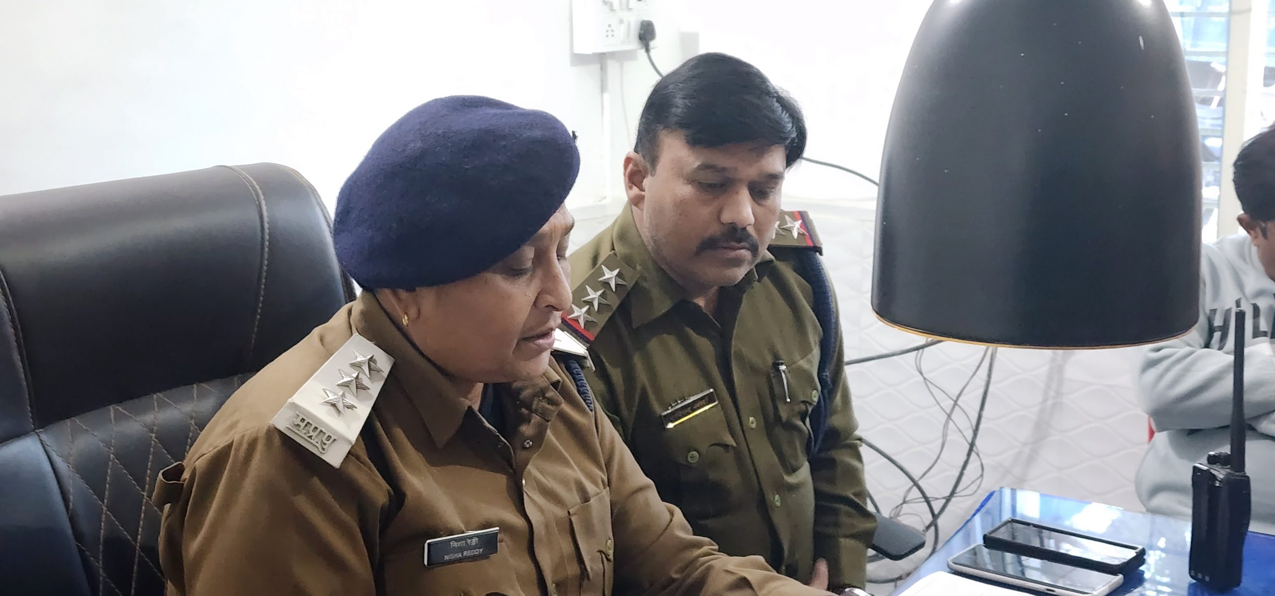 प्रेस से चर्चा करती सीएसपी निशा रेड्डी और टीआई कोतवाली रविंद्र शर्मा